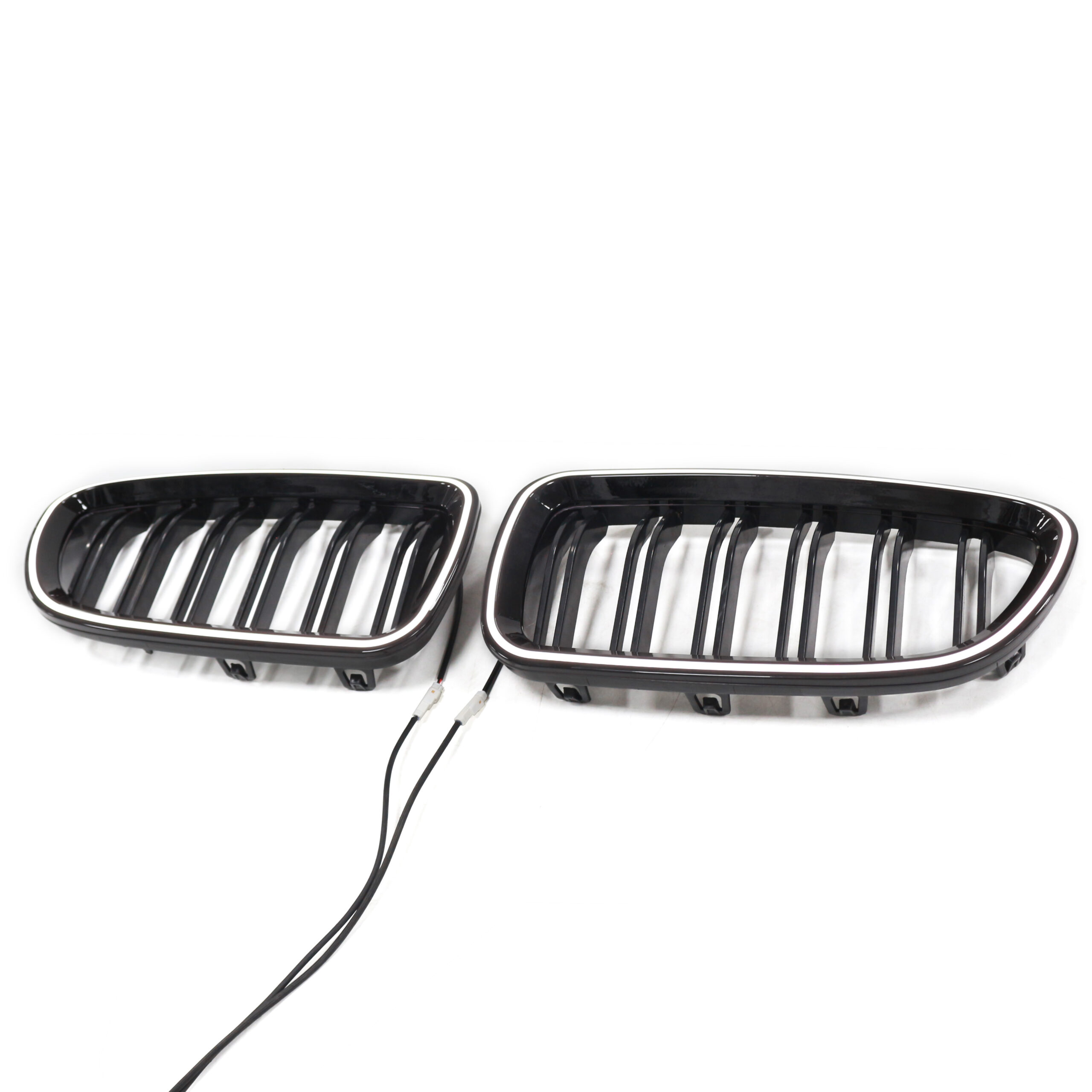 BMW F10/F11 (10-17) juodos, blizgios, dvigubos grotelės su LED apšvietimu